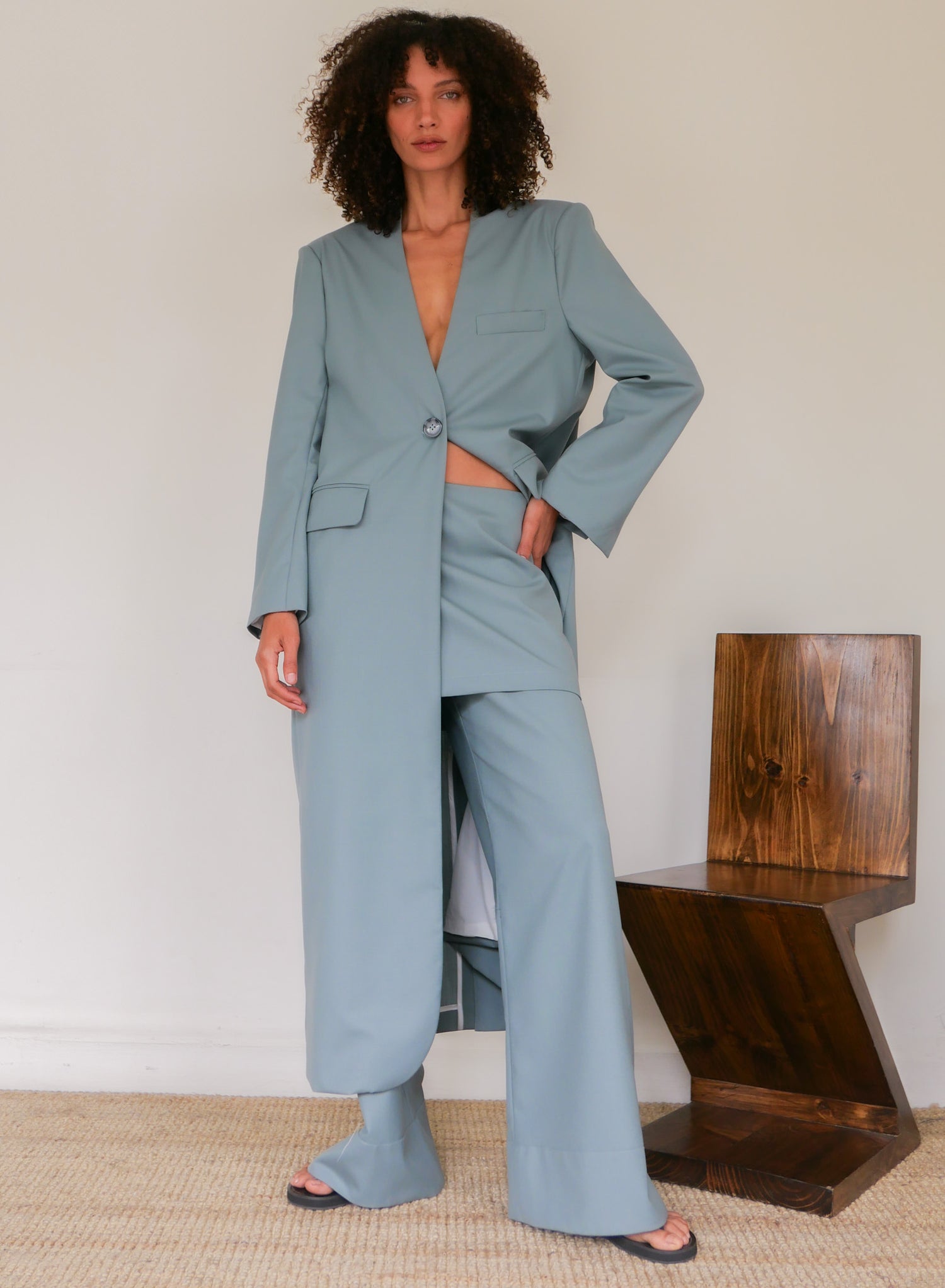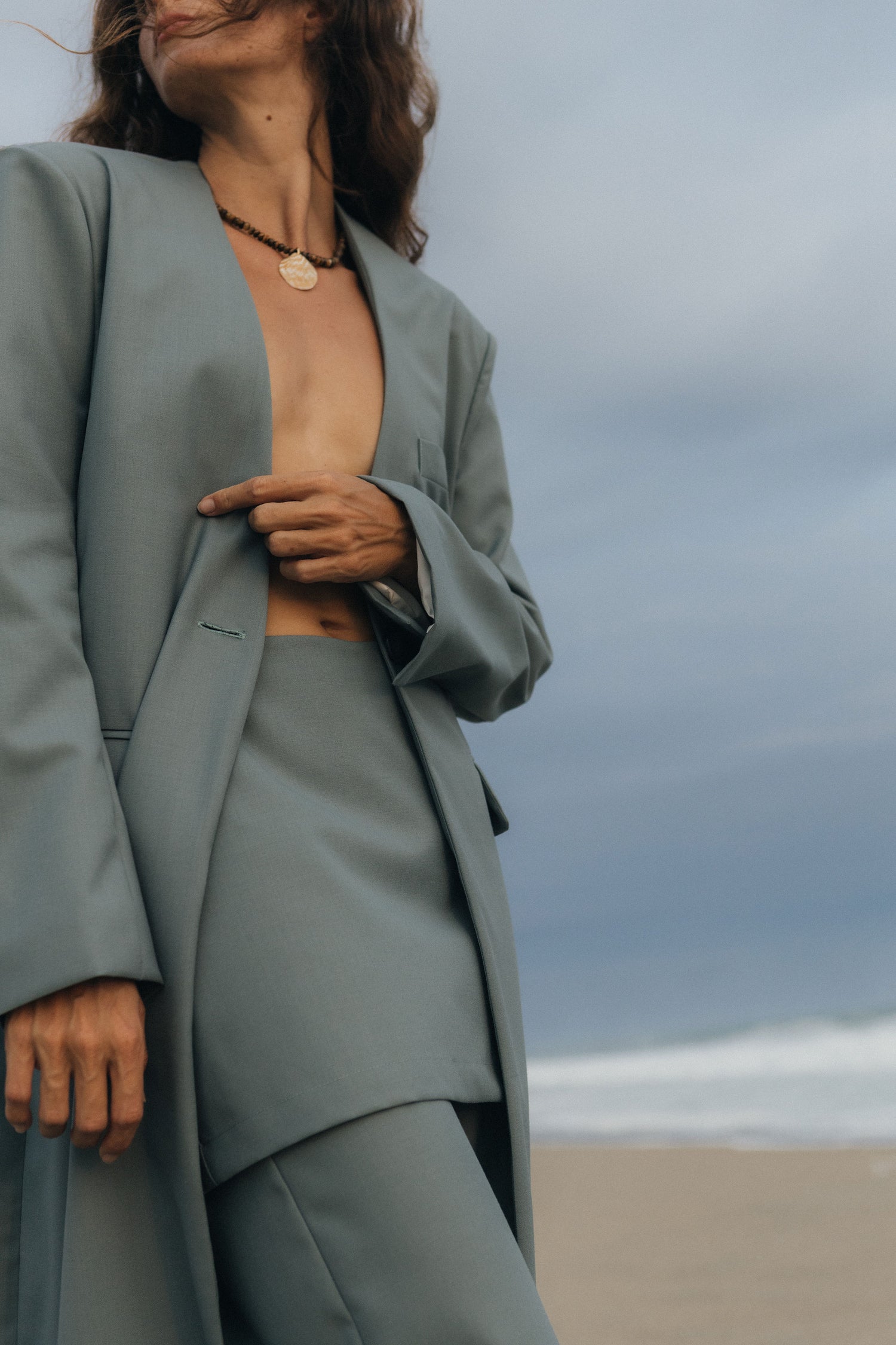 The Long Collarless Coat extends the clean lines of the blazer into outerwear. Cut in wool, fully lined, and finished with pockets, it has an uninterrupted silhouette with a single button closure. Pair it with the combination trouser for a balanced pairing, or wear it over any trousers for day-to-day composure. A streamlined piece that lends refinement to colder-months dressing.