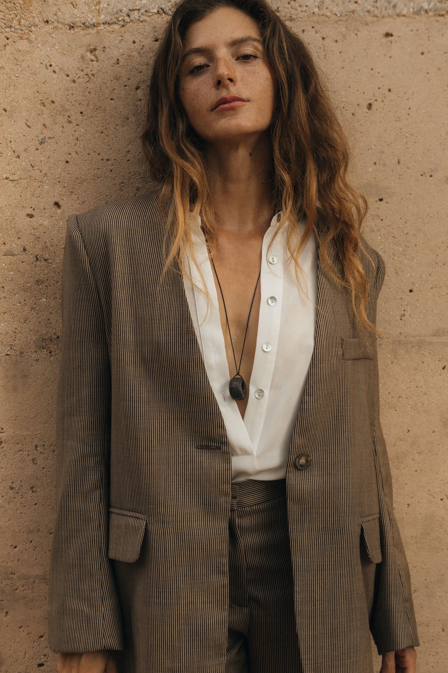 An effortless take on tailoring, this blazer is cut from a lightweight wool and left collarless for a clean, modern line. The unstructured shape gives it ease, while a full lining ensures it layers smoothly over everything from shirting to knits. Designed with flap pockets and a single-breasted closure, it's an easy piece to dress up or pare back, refined for occasion, yet relaxed for everyday wear.